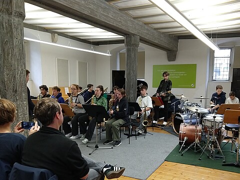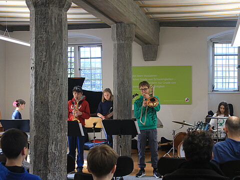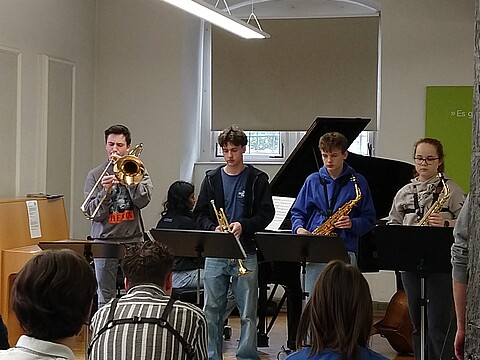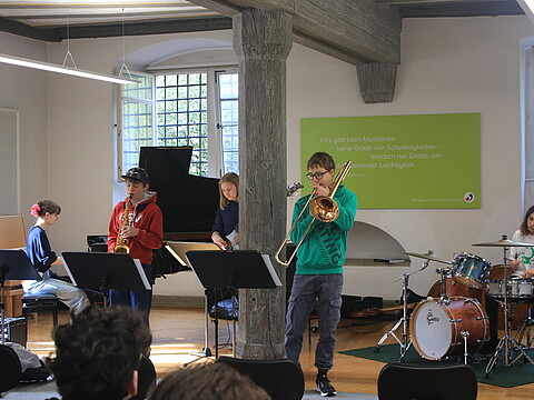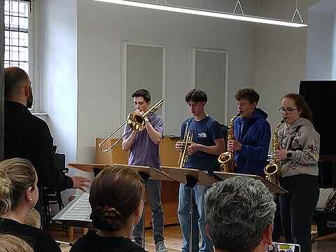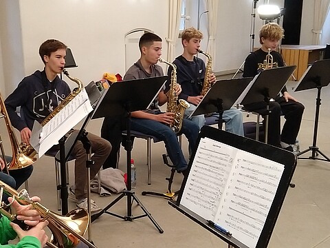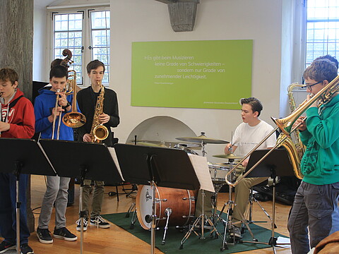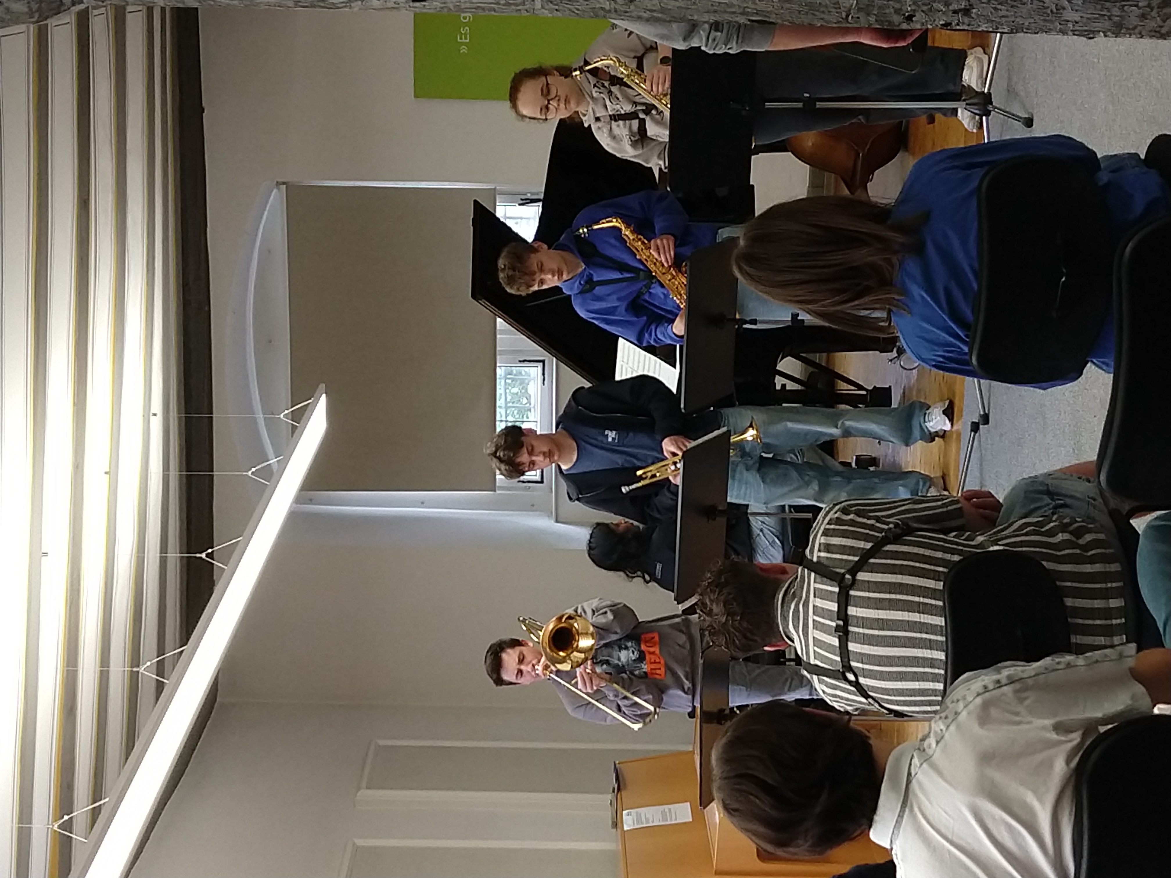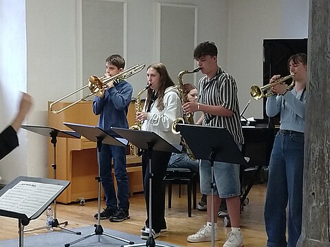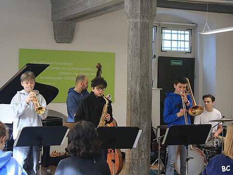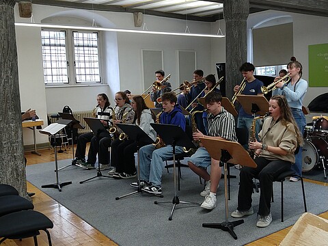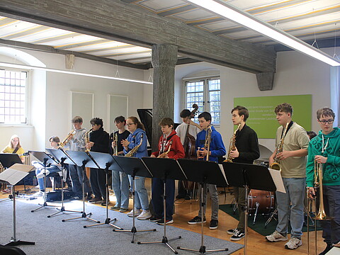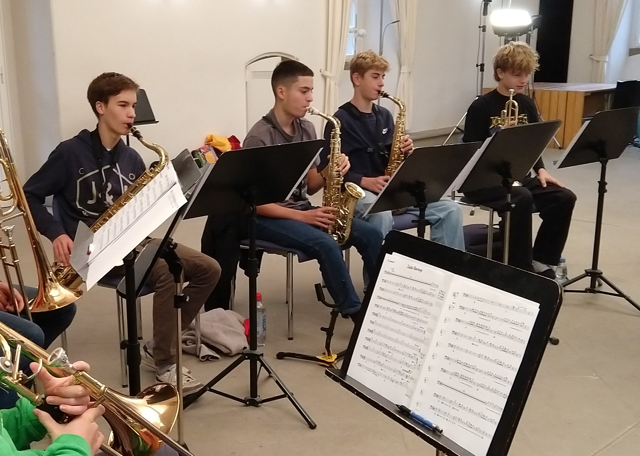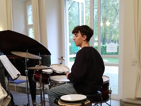 "Bevor ich zu den Jazz Juniors gekommen bin, hatte ich noch nie Jazz gespielt und hatte nie richtigen Bezug dazu. Als ich dann in der ersten Arbeitsphase war, hat es mir viel Spaß gemacht! Man lernt von den Dozenten sehr viel Neues. Außerdem macht es viel Spaß mit den anderen Musikern neue Dinge auszuprobieren und zu improvisieren. Ich war schon zwei Mal dabei und freue mich schon sehr auf die nächste Arbeitsphase." (April 2025)