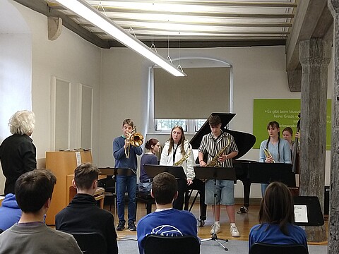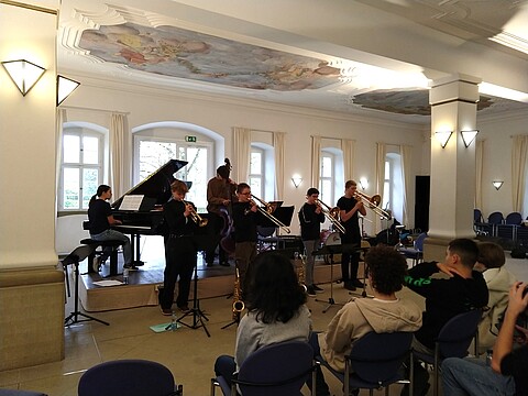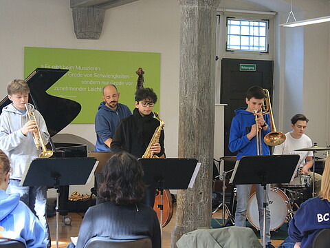 "Ich konnte schon zum 2. Mal bei den Jazz Juniors dabei sein, und auch diese Arbeitsphase war wieder sehr bereichernd. Vor allem die intensive Arbeit zusammen mit den Dozenten und den anderen Teilnehmern hat mir richtig Spaß gemacht, war aber auch herausfordernd. Auch die Zeit zusammen mit den anderen Teilnehmern und der Austausch waren wirklich schön und es hat eine sehr entspannte und offene Atmosphäre geherrscht." (Herbst 2024)
