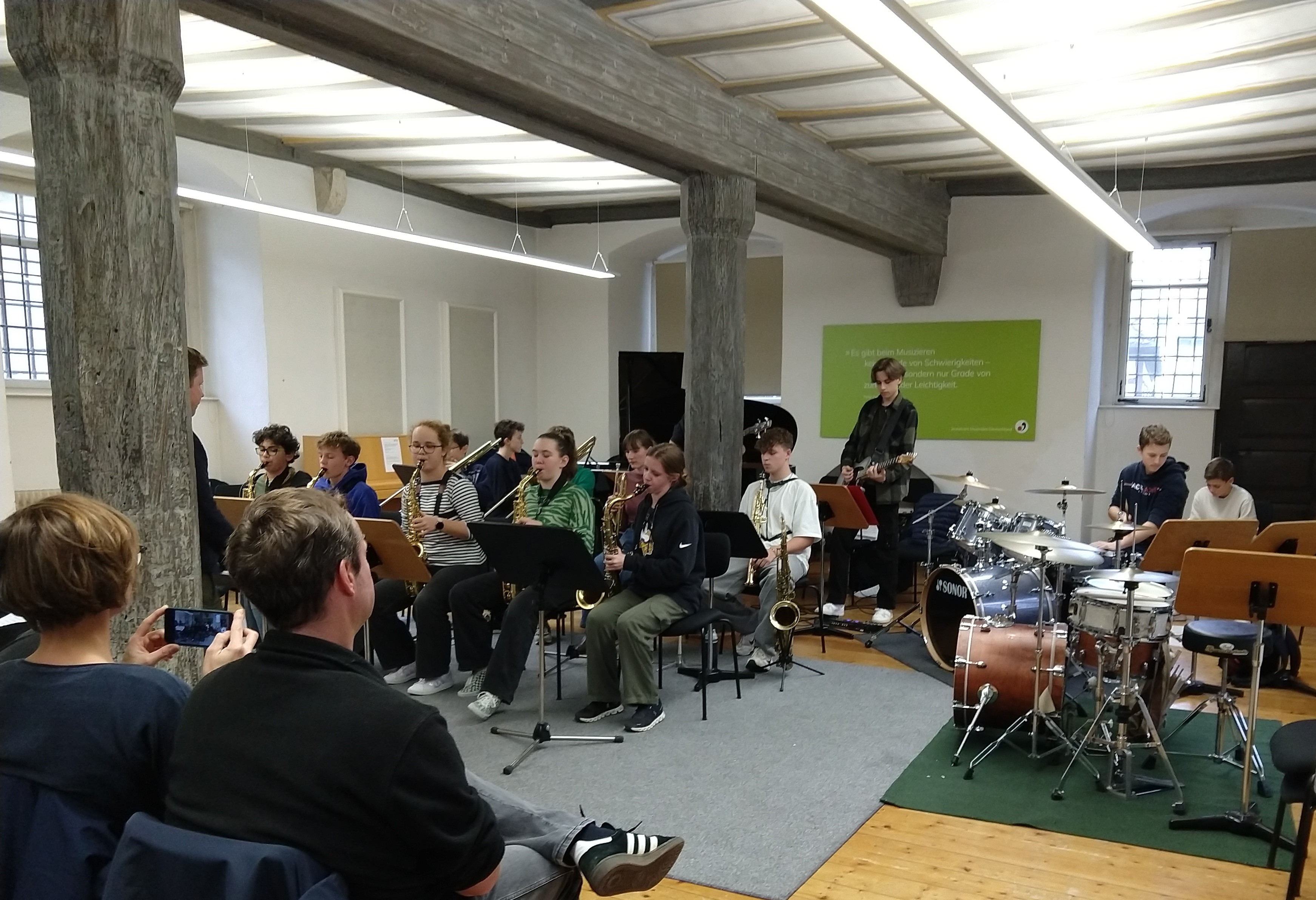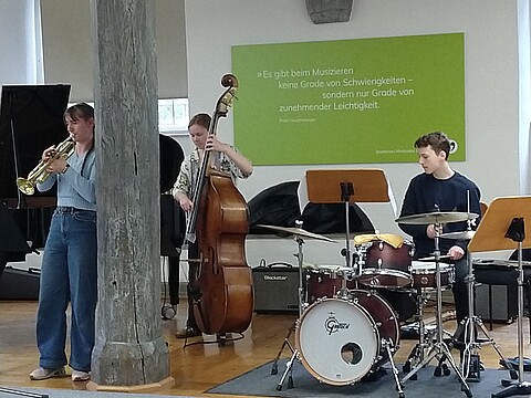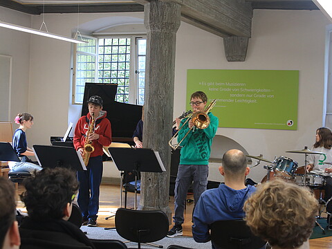 Die Dozenten sind sehr nett und man kann viel von Ihnen lernen. Am besten hat mir das Musizieren mit den vielen talentierten Leuten gefallen. Die Stimmung in der Gruppe ist wirklich gut und wir haben sehr viel Spaß zusammen." (April 2025)