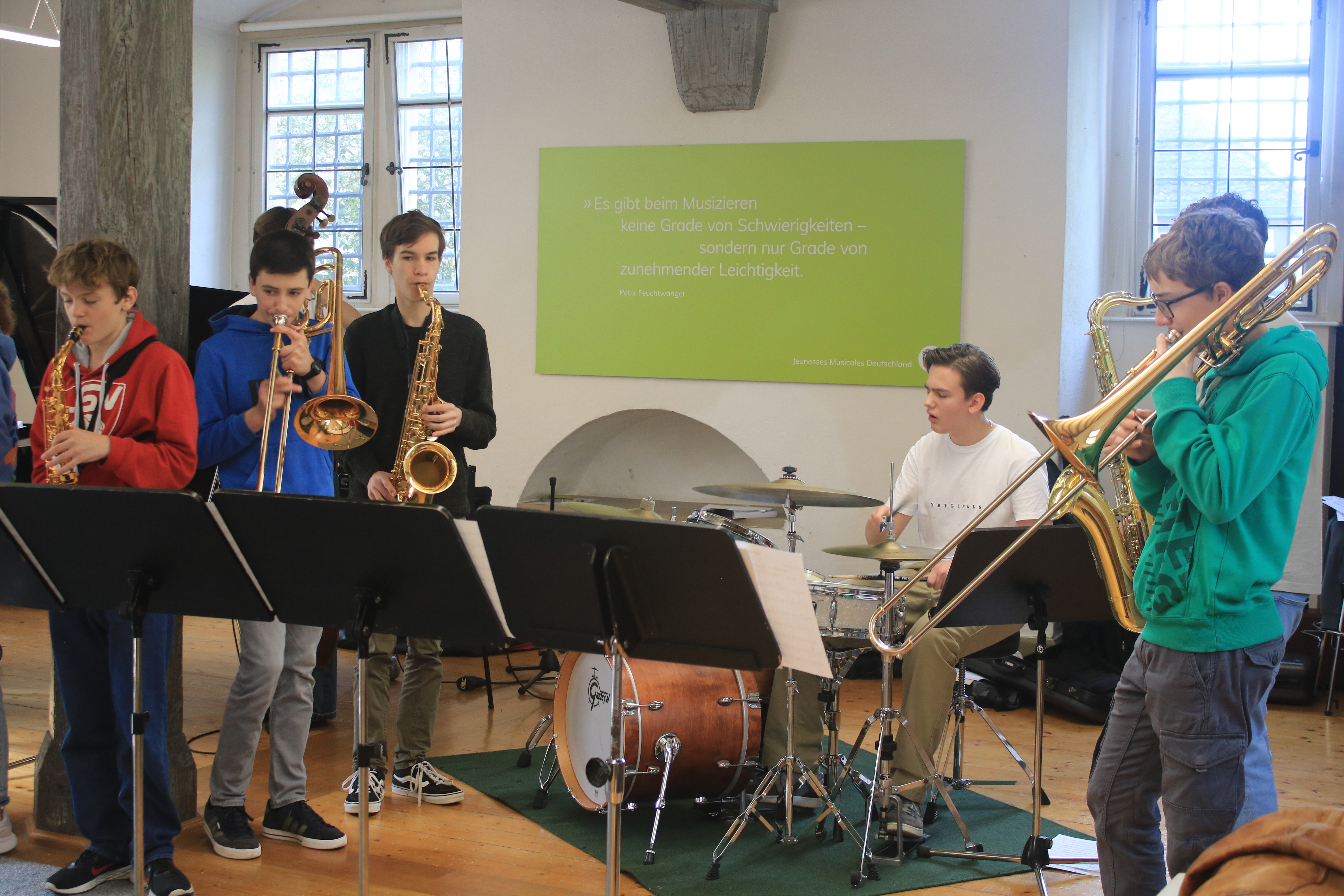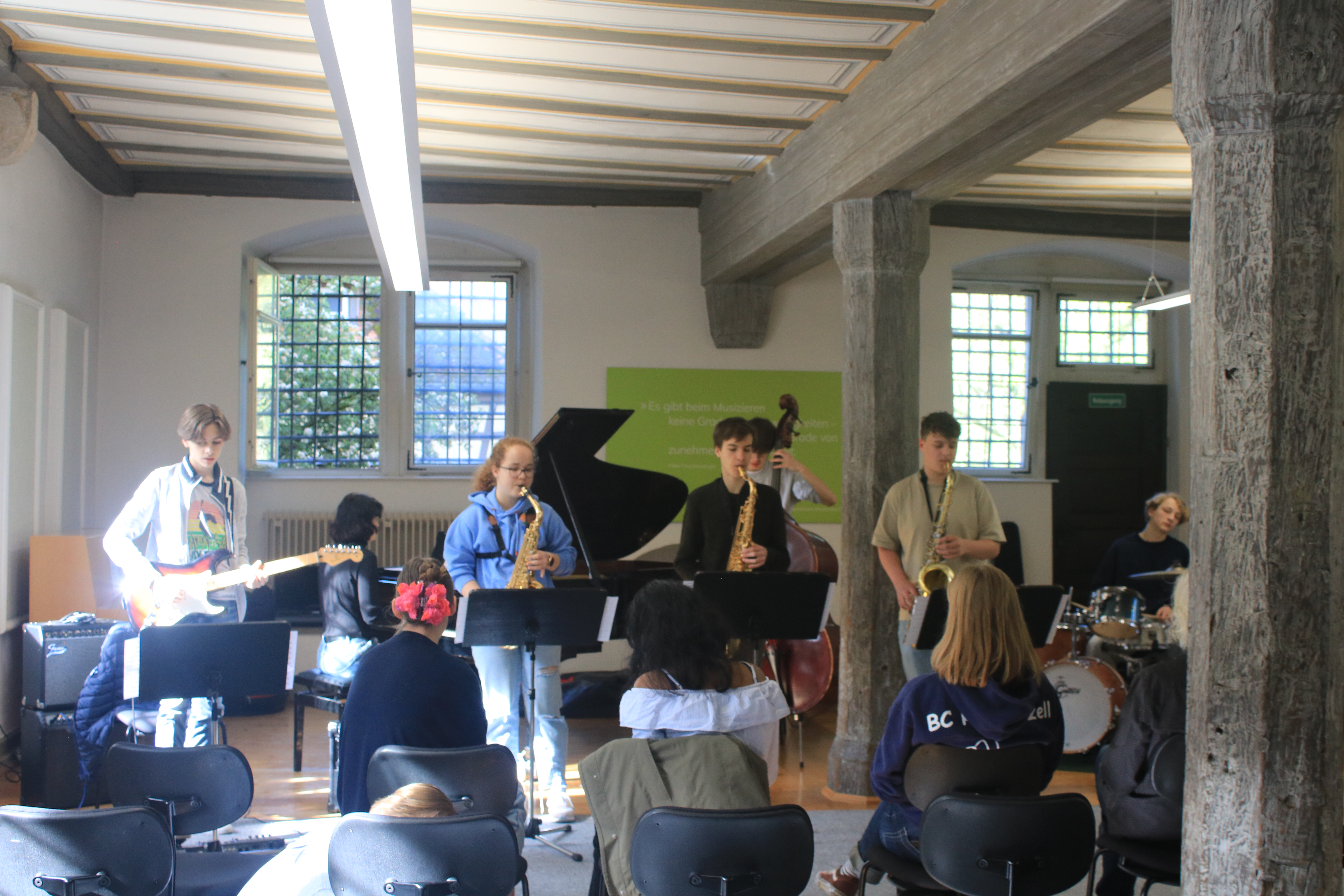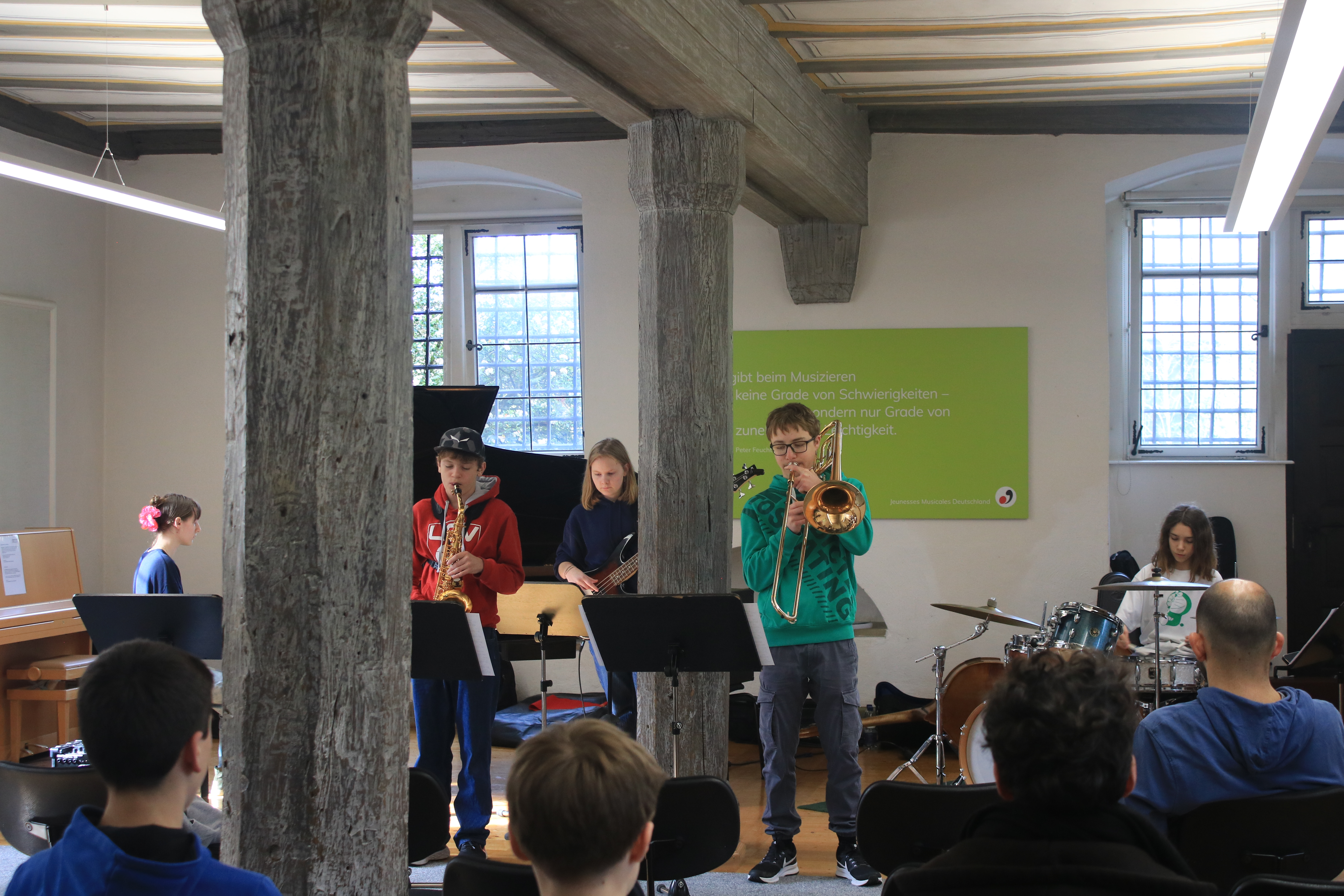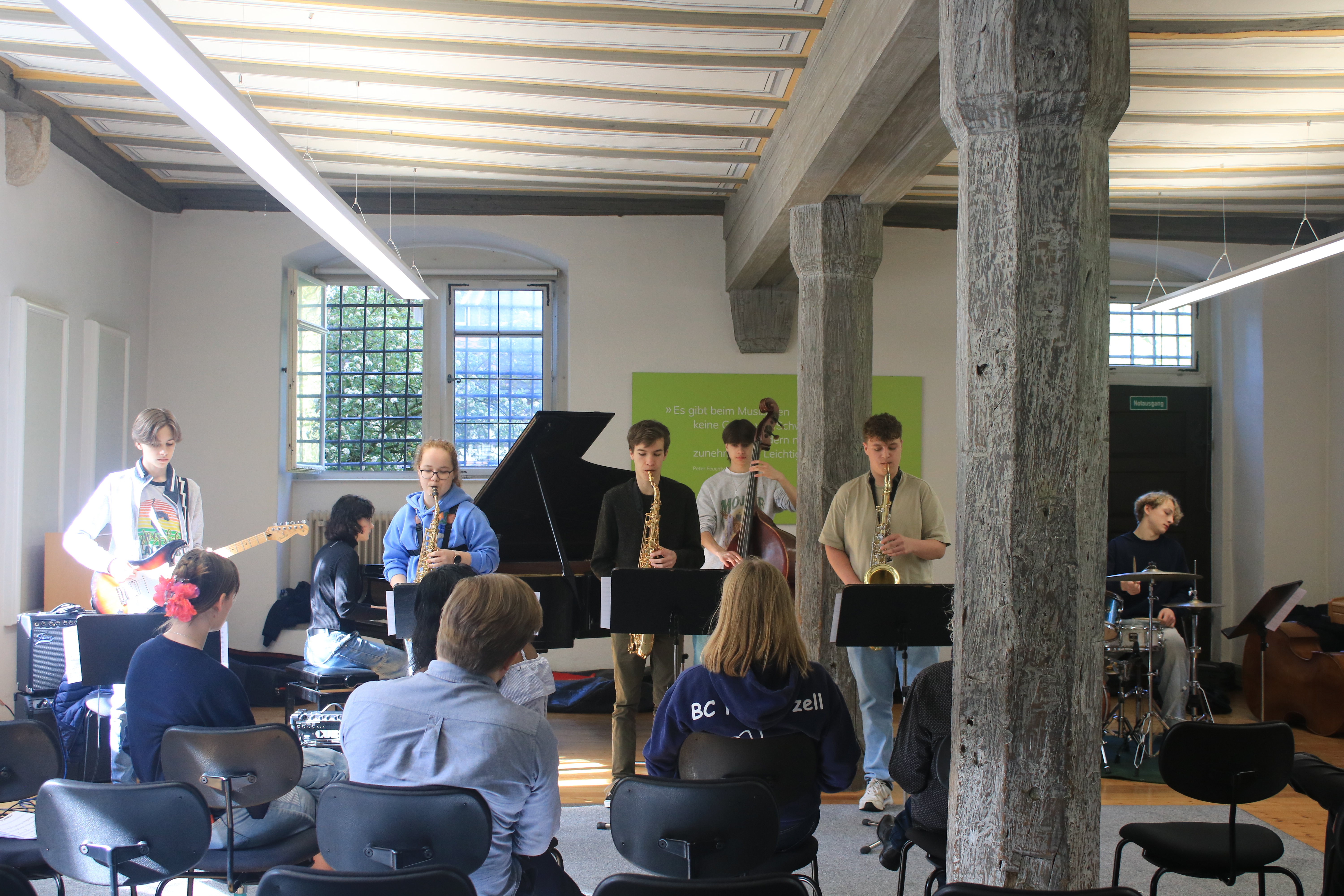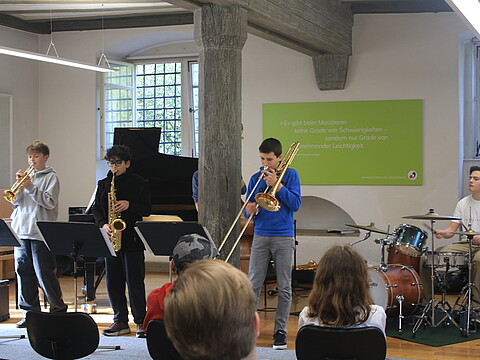 "Das war meine erste Arbeitsphase bei den JazzJuniors und es hat echt Spaß gemacht. Die anderen Leute und die Dozenten waren sehr nett und ich konnte viel dazulernen, vor allem bei der Musiktheorie. Besonders gefallen haben mir das Lajazzo Konzert am dritten Abend sowie die Jam Sessions. Die Unterkunft war ebenfalls sehr gut, das Essen lecker und die Zimmer schön. Insgesamt waren es sehr schöne drei Tage." (April 2024)