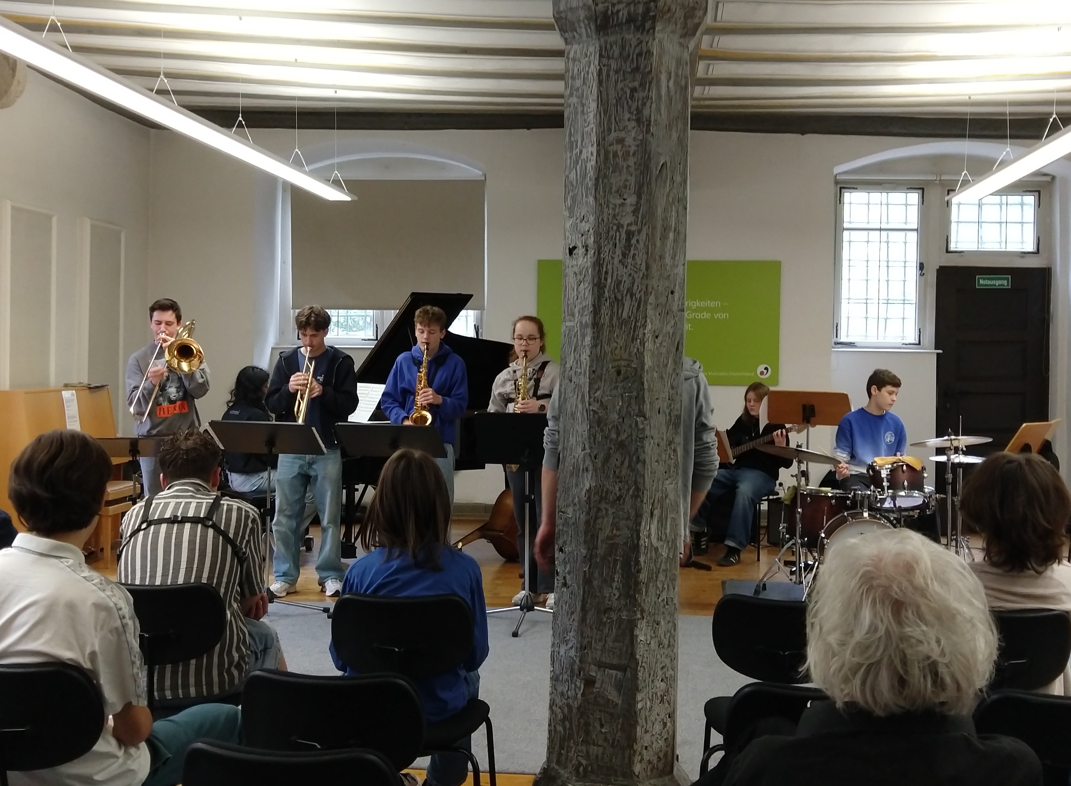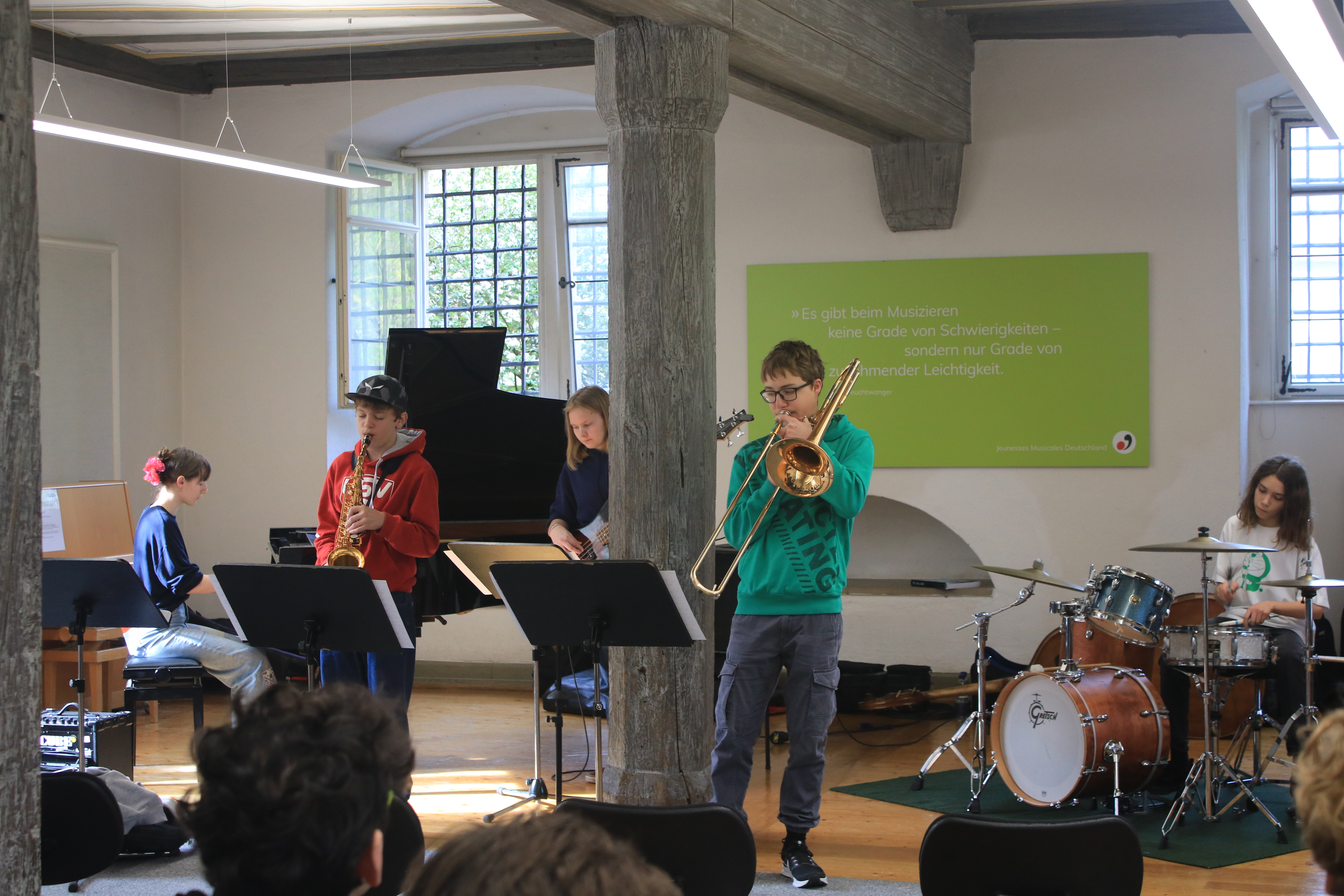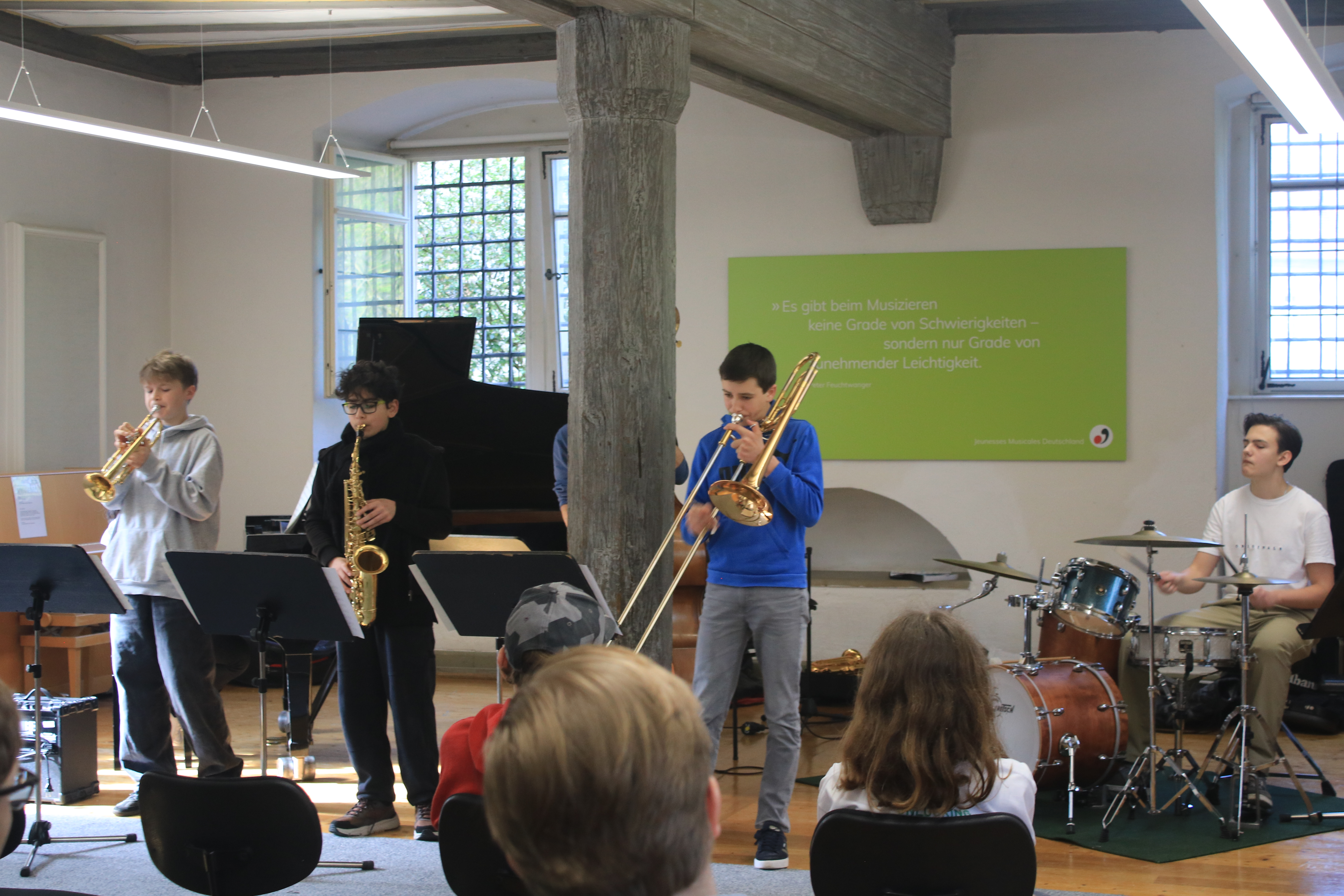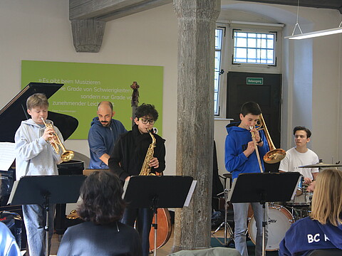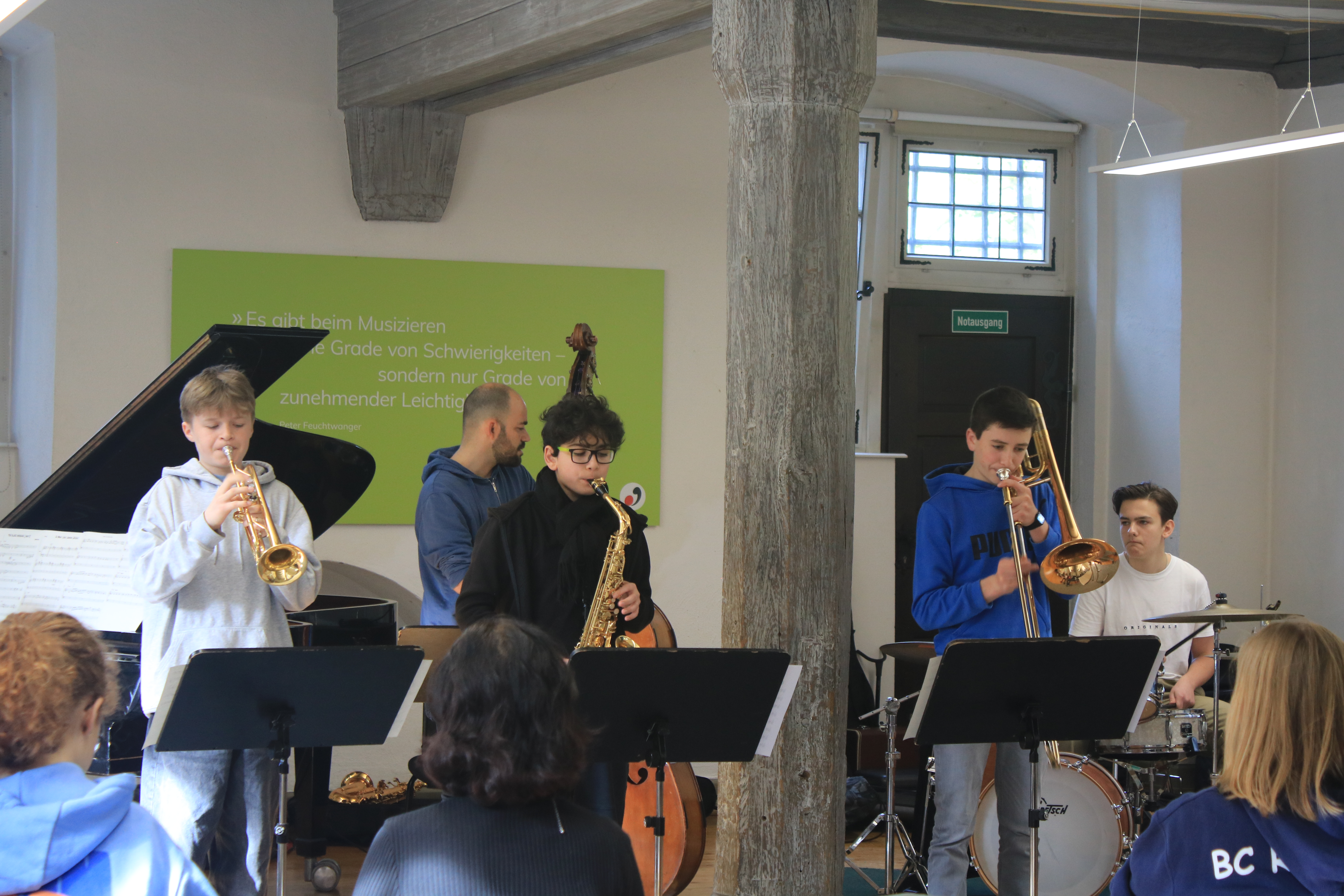 „Ich durfte dieses Jahr das erste Mal bei den Jazzjuniors dabei sein und es hat mir sehr viel Spaß gemacht. Besonders hat mir gefallen, mit anderen talentierten und jazzbegeisterten Jugendlichen Kontakte zu knüpfen und gemeinsam zu Jammen und an den Aufgaben zu wachsen. Die Dozenten waren allesamt super nett und haben uns viel beigebracht. Ein besonderes Highlight war das Jammen und Kennenlernen mit den Musikern des Lajazzo. Ich freue mich schon sehr auf die nächste Arbeitsphase.“ (April 2024)
